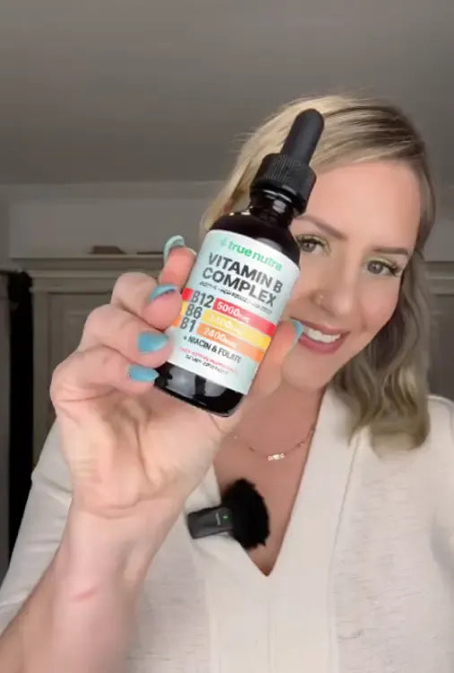 True Nutra's 5-in-1 Vitamin B Complex uses the most potent, high-quality forms of B1, B3, B6, B9, and B12, the essential nutrients your body needs daily.